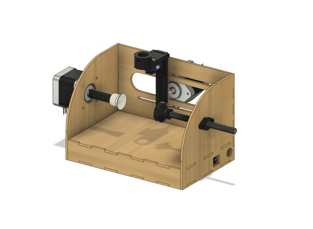 It uses Arduino UNO, Nema17 steppers a servo motor, and A4988 drivers. Some parts are laser cut some are 3D printed.